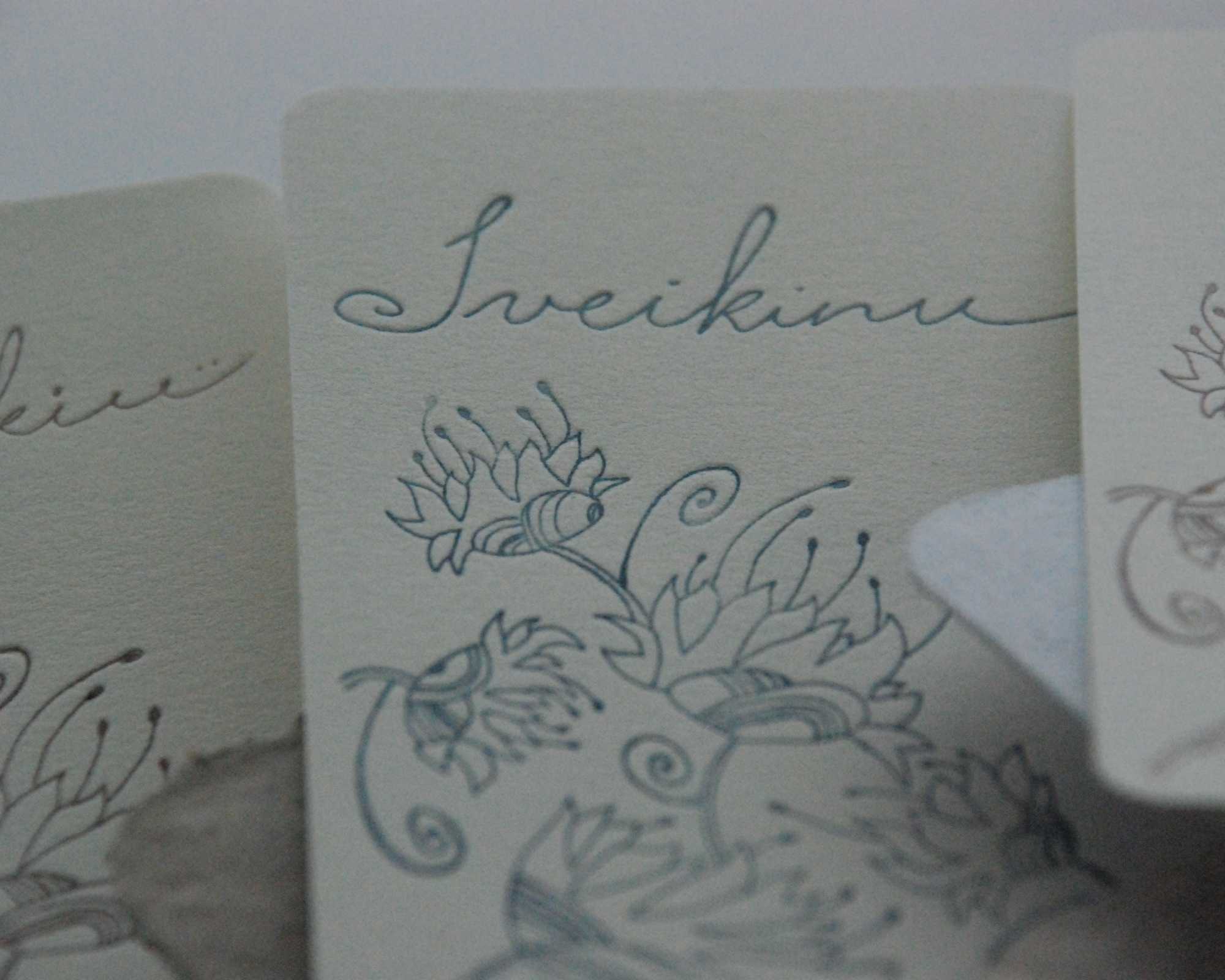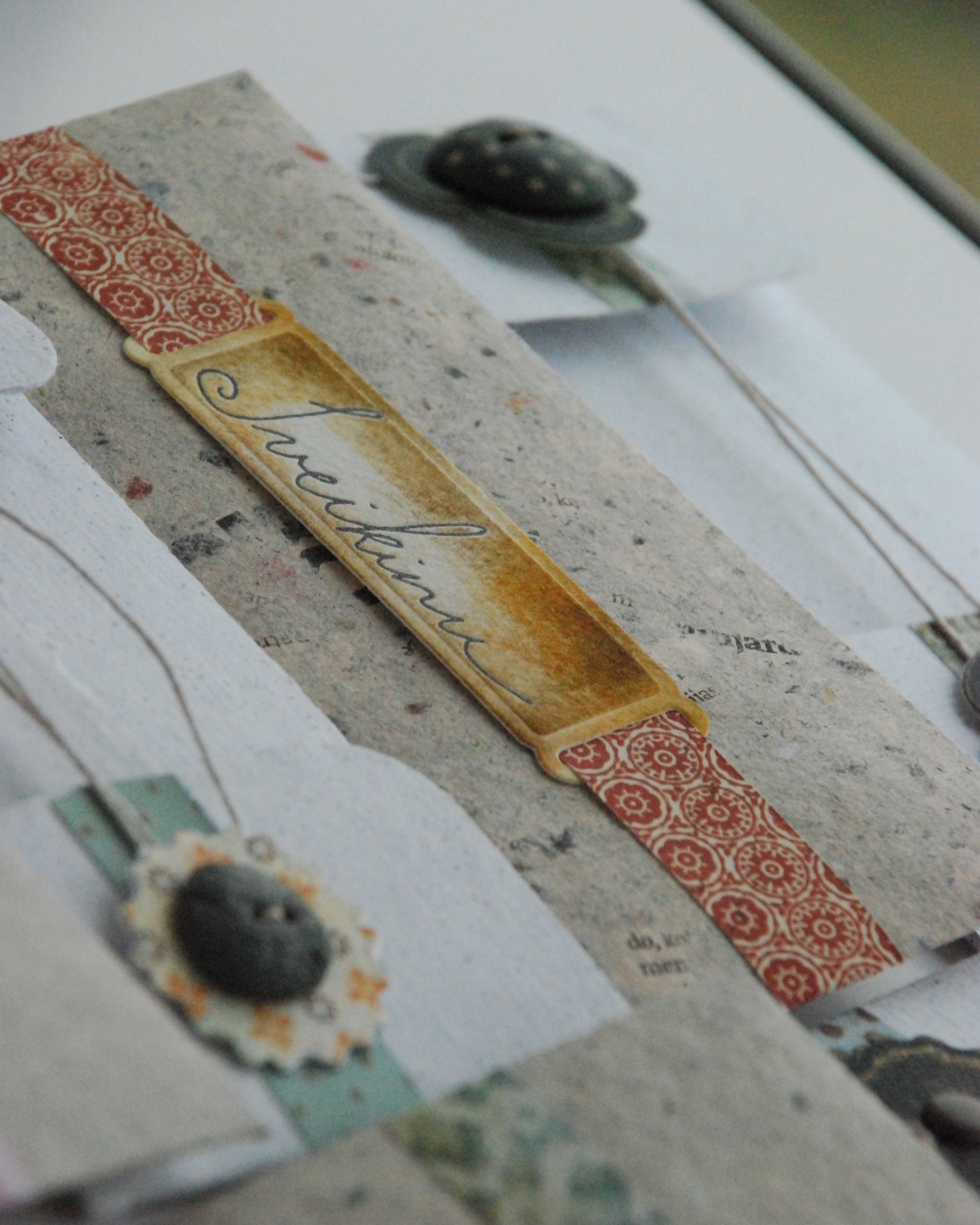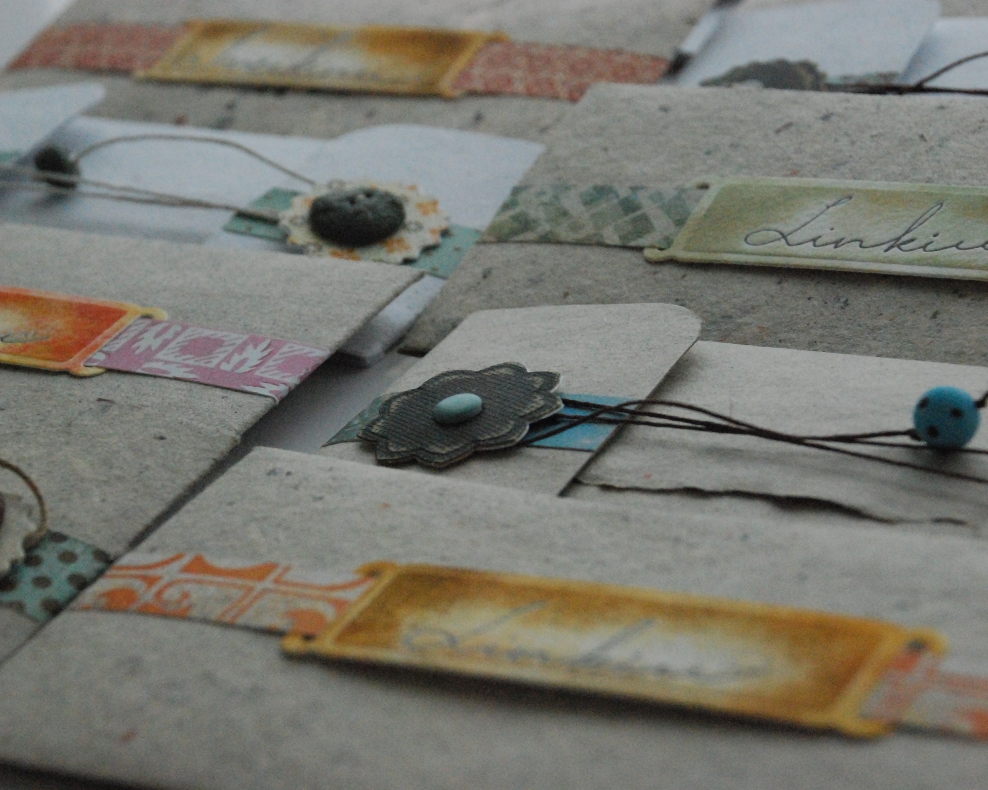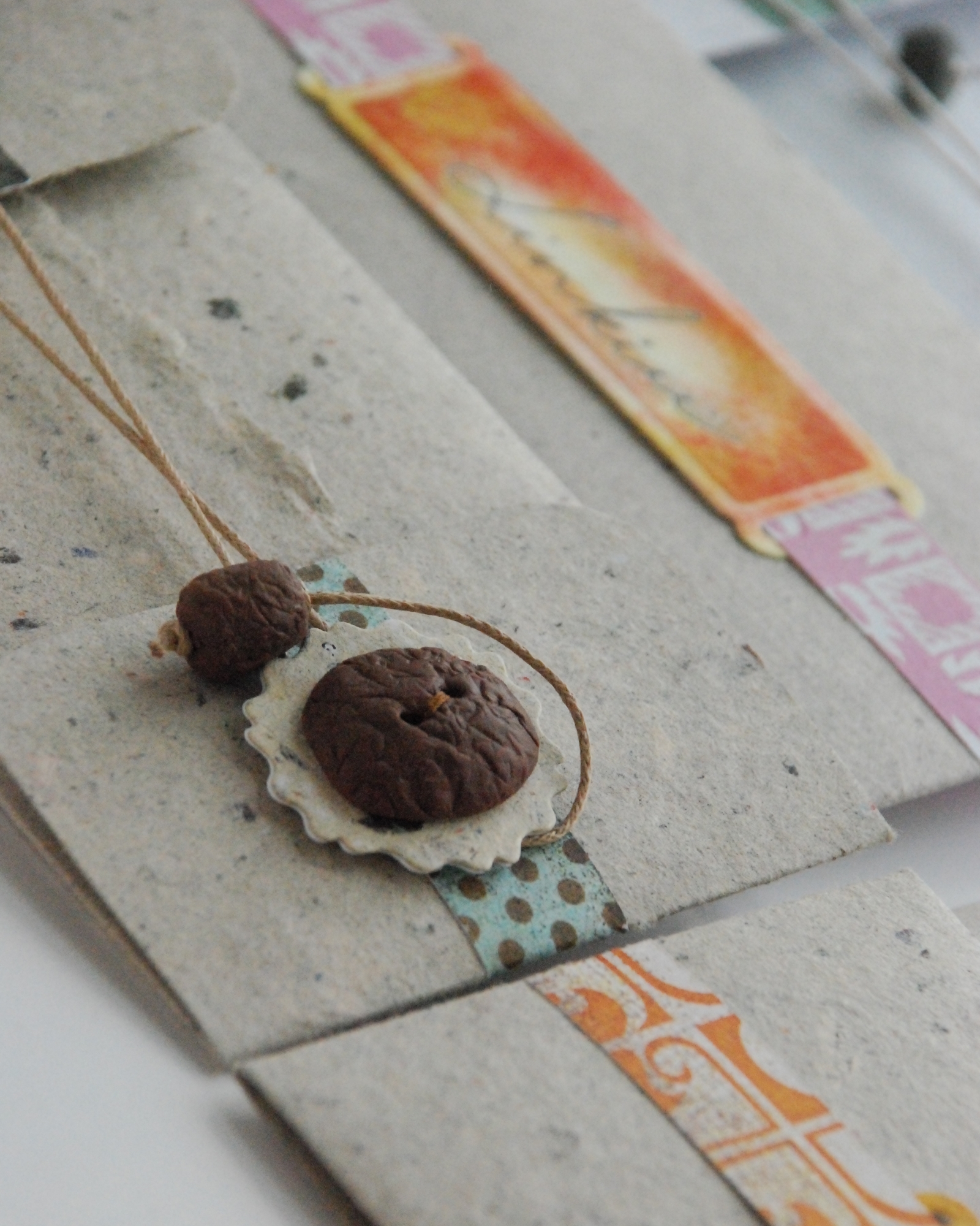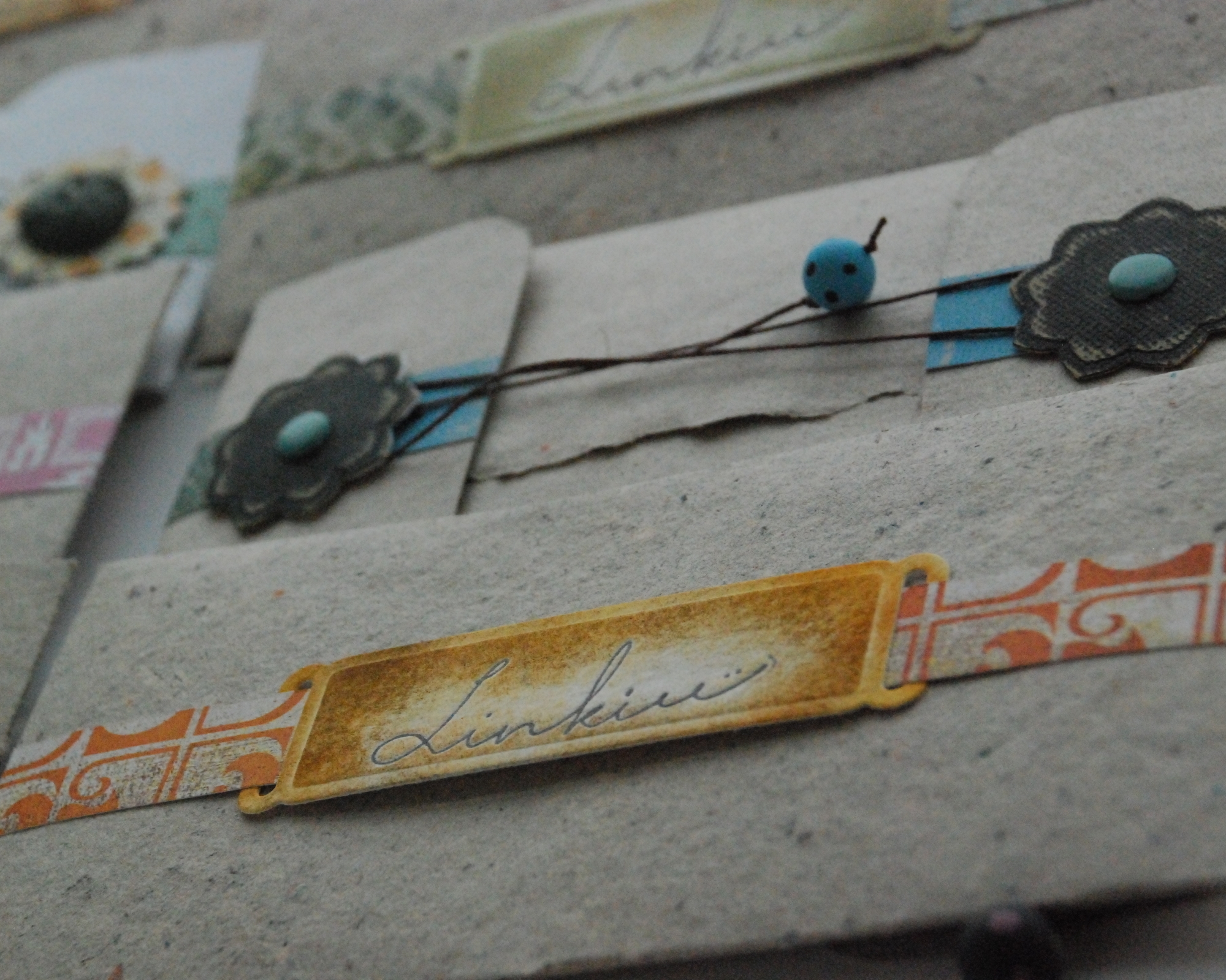 Pailgi vokai buvo pagaminti specialiai dovanojamiems banknotams pakuoti. Vokeliams panaudojau savos gamybos perdirbtą popierių (šiek tiek popieriaus gamybos proceso nuotraukų galite rasti šiame albume Flickr). Spaudus atvirukuose ir vokuose panaudotiems antspaudams ir įspaudams pasigaminau taip pat pati iš fotopolimerų. Vokuose taip pat panaudojau savos gamybos sagutes ir karoliukus. Tokie vat smarkiai rankų darbo popieriniai dalykai gavosi :)