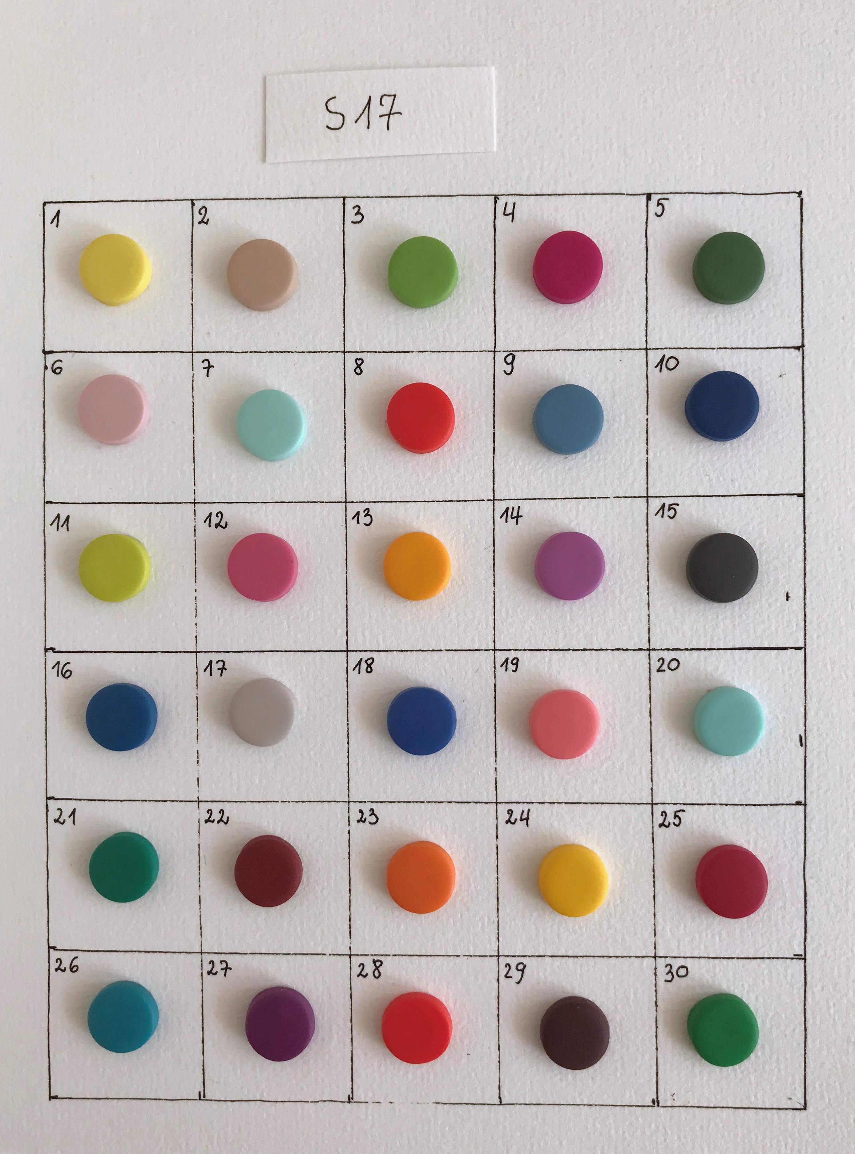 Jei nerandate norimo didumo ir pageidaujamų spalvų sagų tarp jau pagamintų, galite užsakyti.